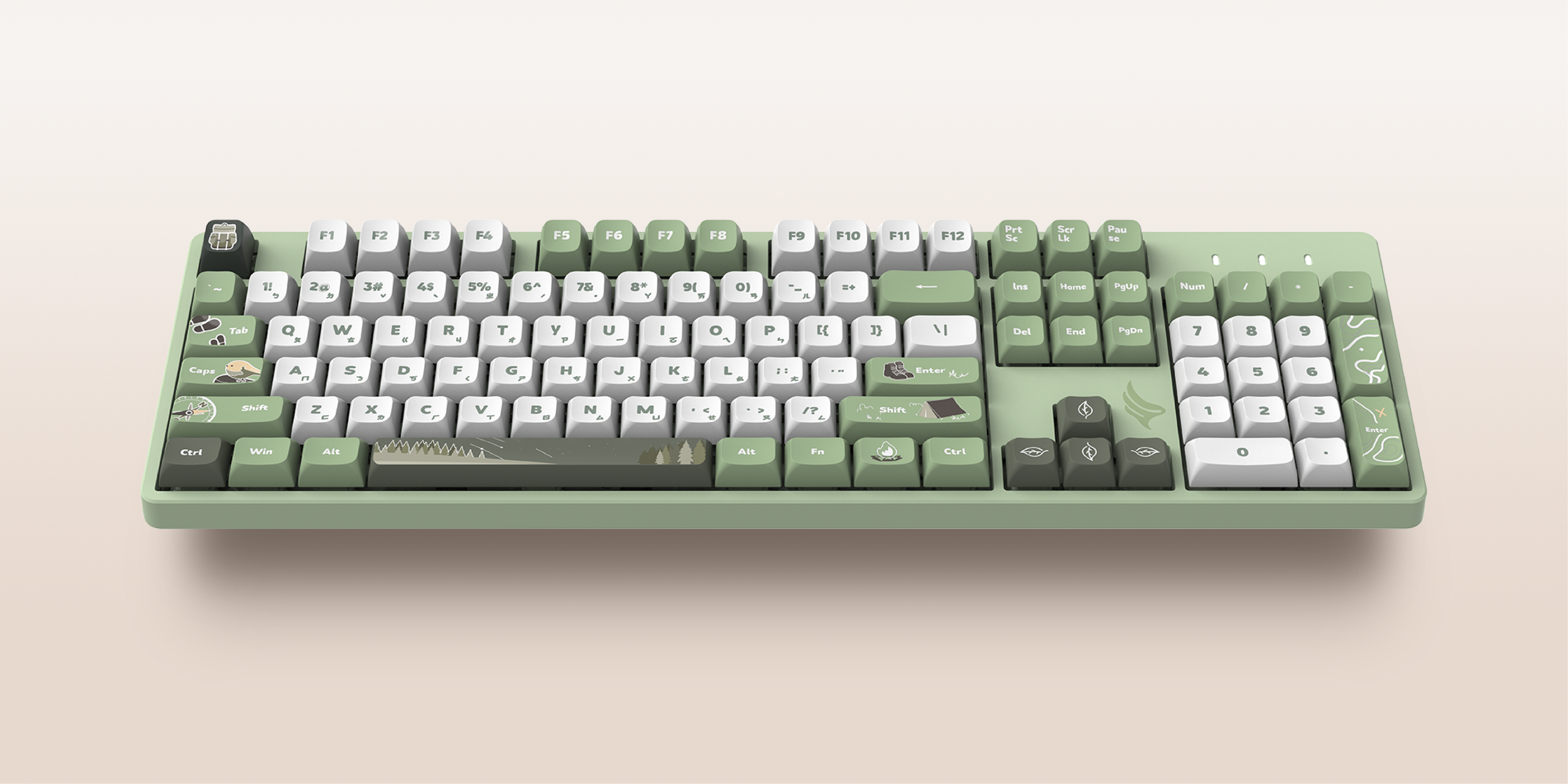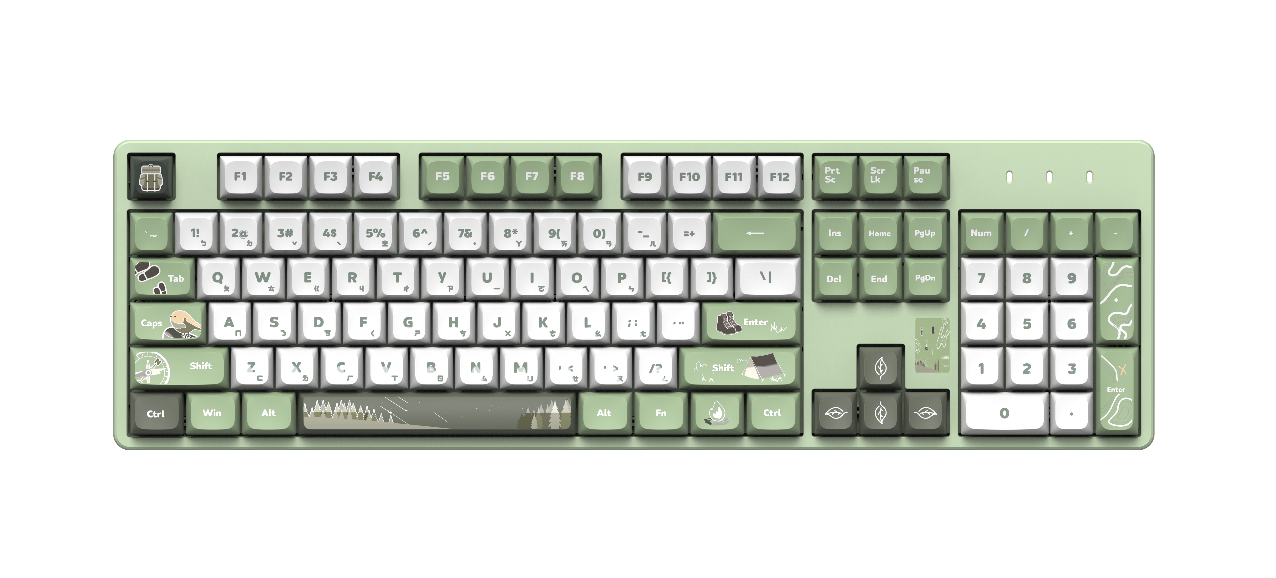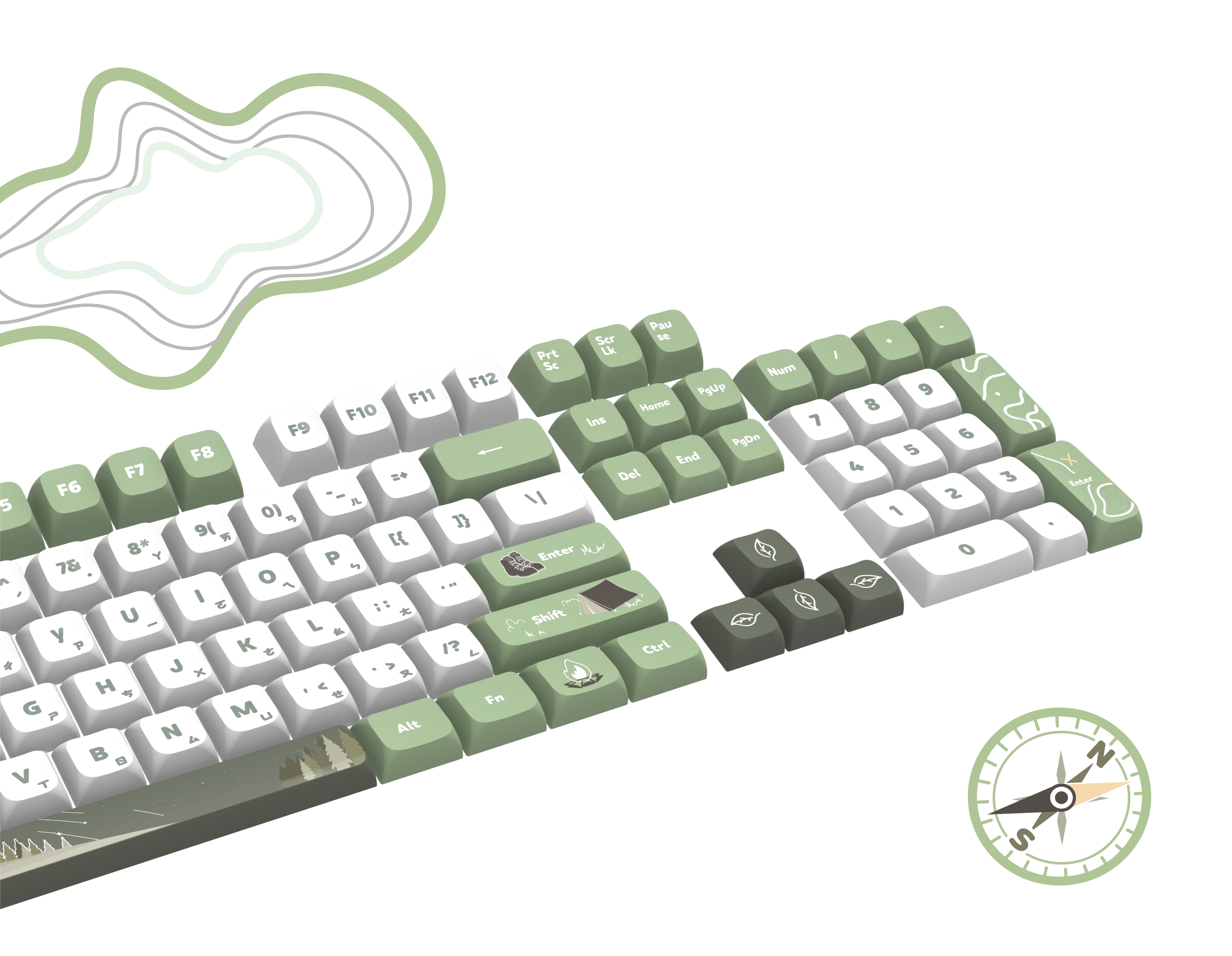 (林間篝火鍵帽+綠色磁吸上蓋+白色套件)