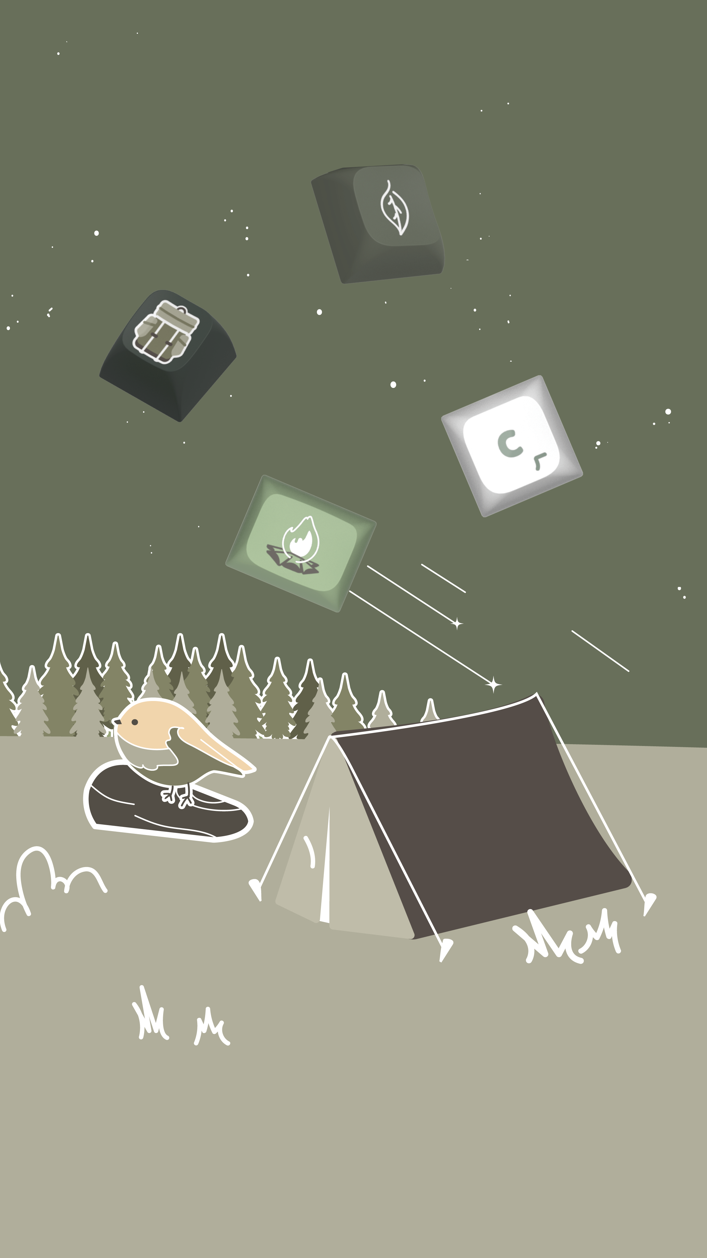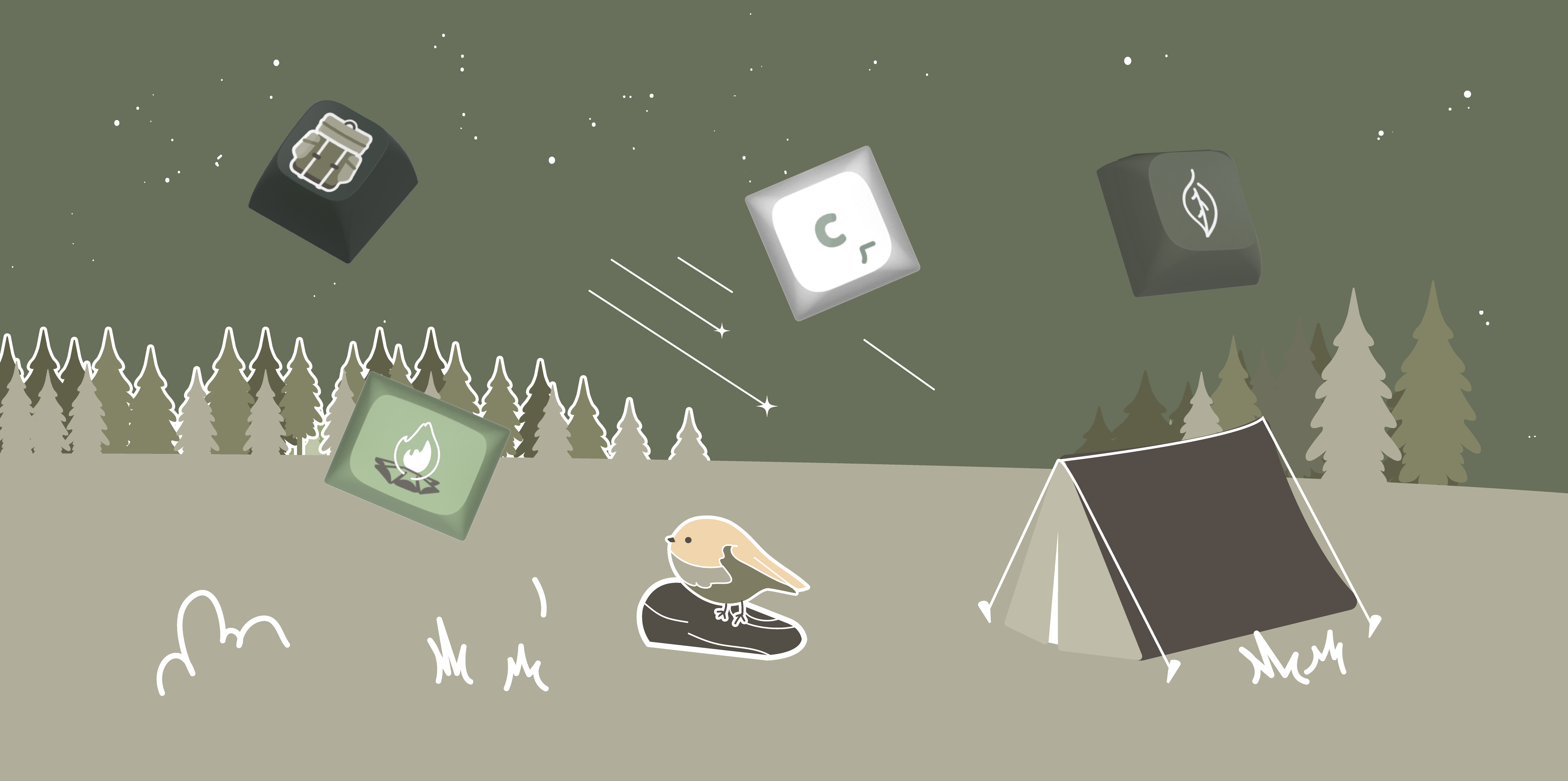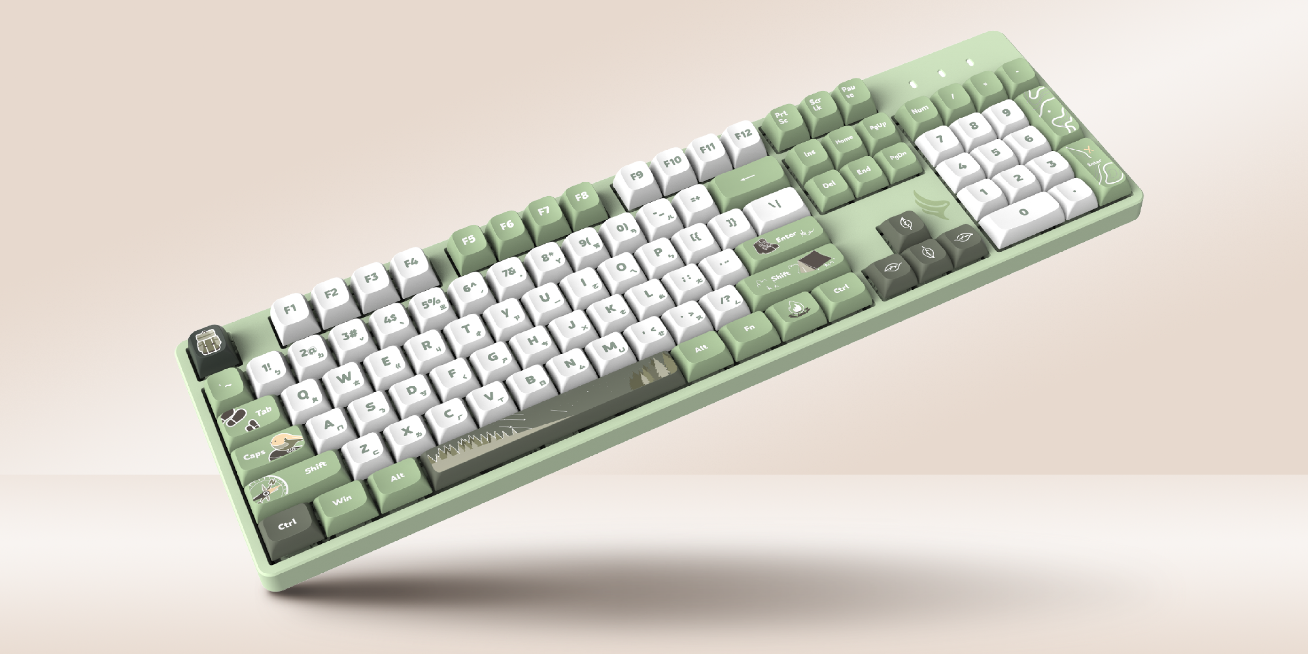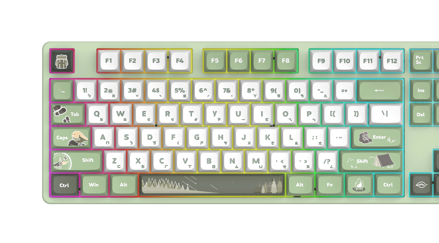 (林間篝火鍵帽+綠色磁吸上蓋+白色套件)