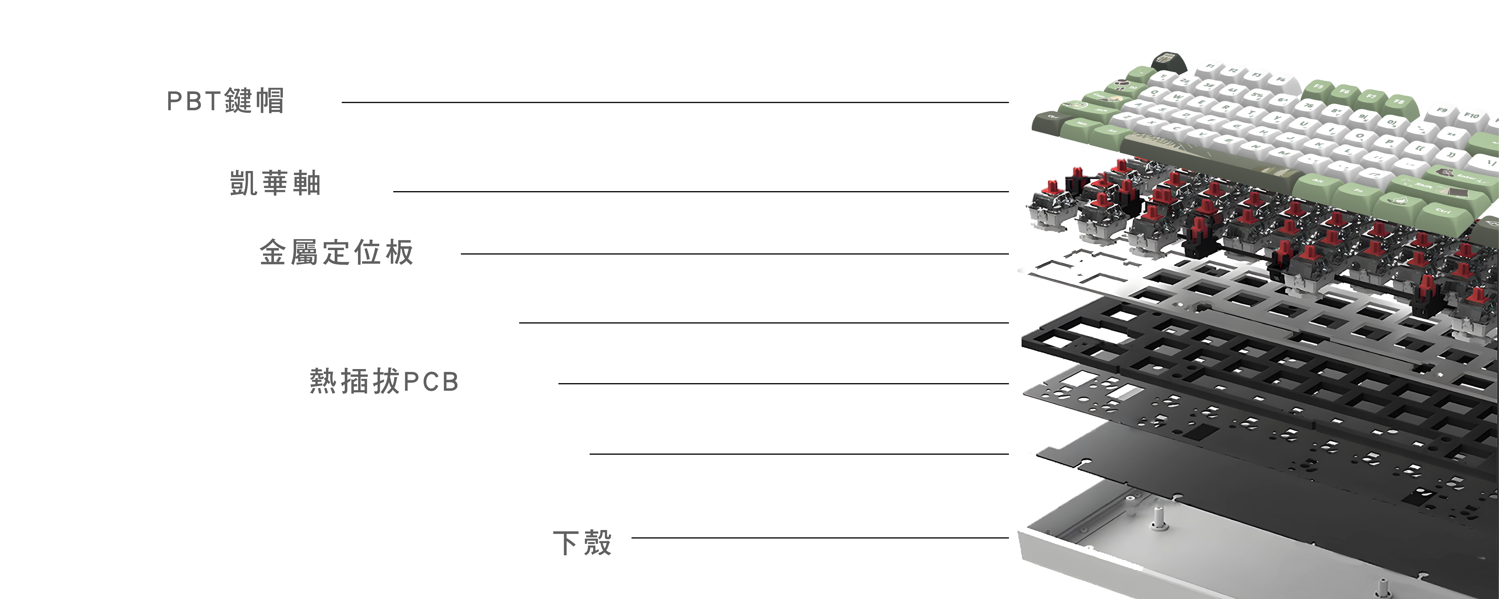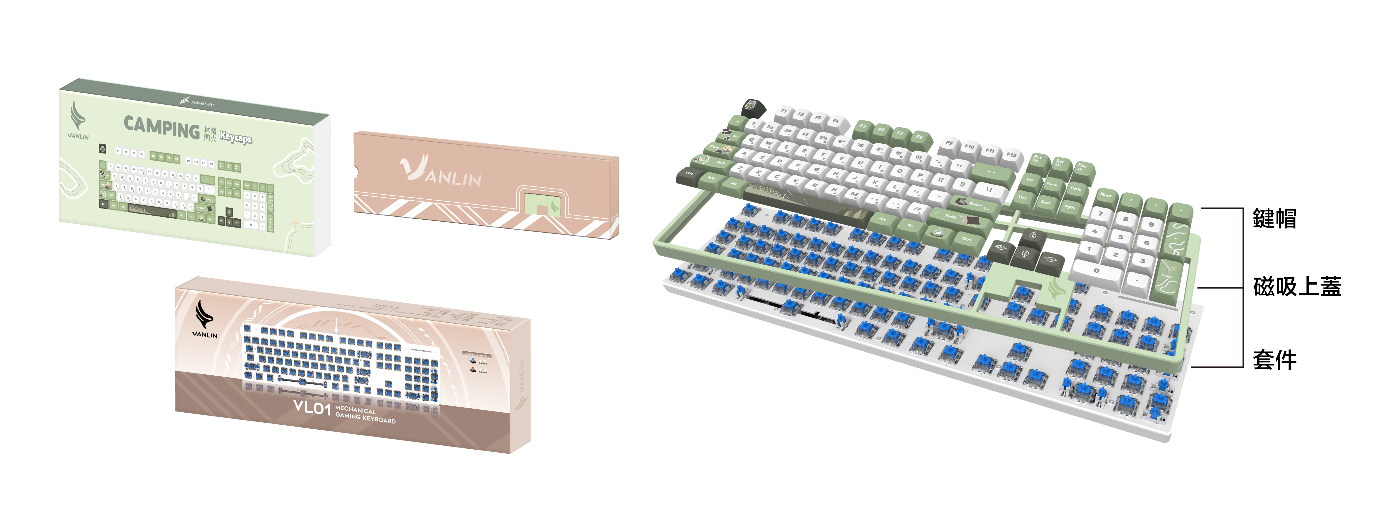 此商品包含:VL01白色套件+林間篝火鍵帽+VL01綠色上蓋
