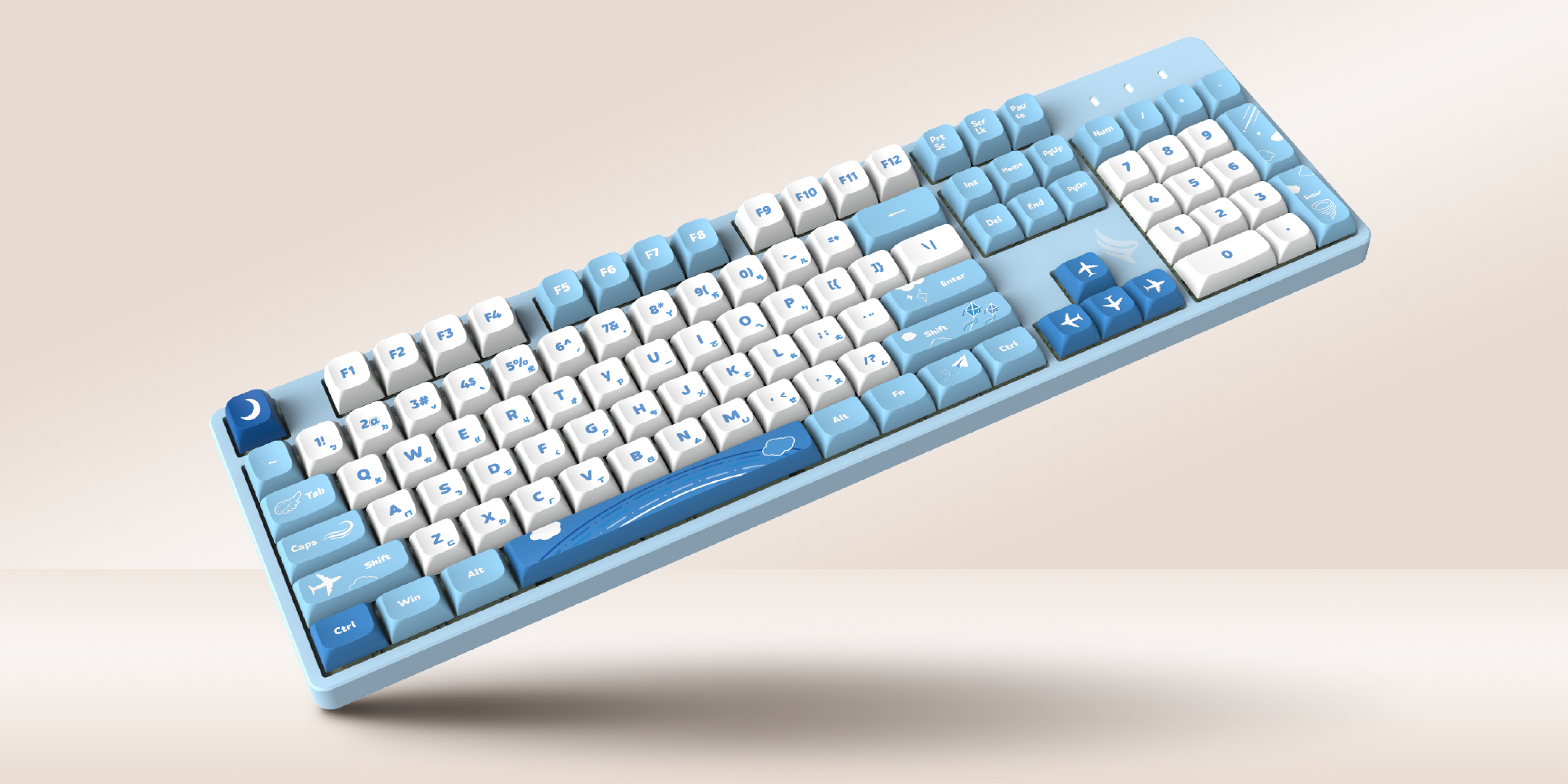 (雲朵蹦蹦鍵帽+藍色磁吸上蓋+白色套件)